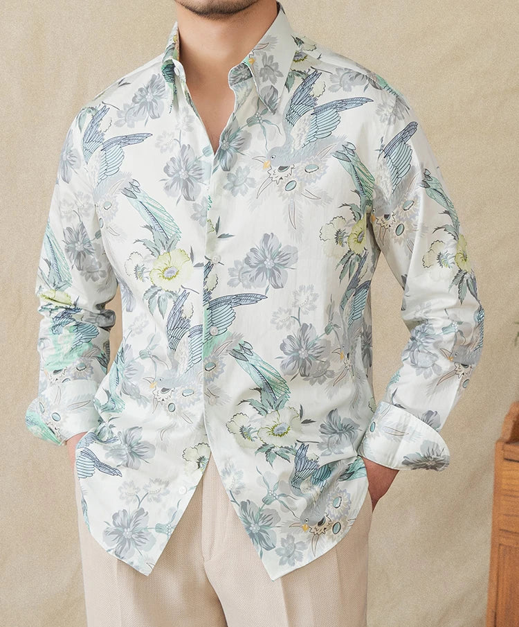 قميص قطني ناعم مطبوع عليه أكمام طويلة