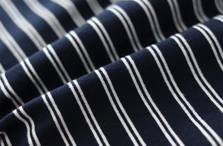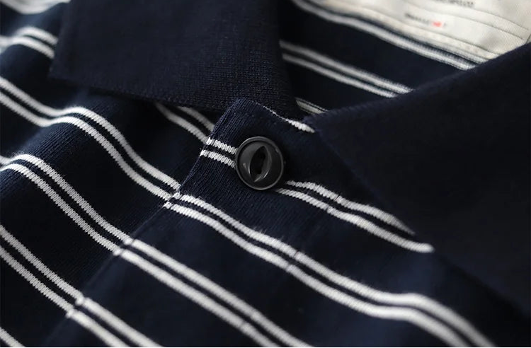 Stay cool and stylish on the go with our Polo cotton t-shirt with blue stripes. Made with blue stripes, this shirt is perfect for adding a pop of color to your wardrobe. The soft, knitted fabric ensures maximum comfort, making it a must-have for any casual or professional setting.