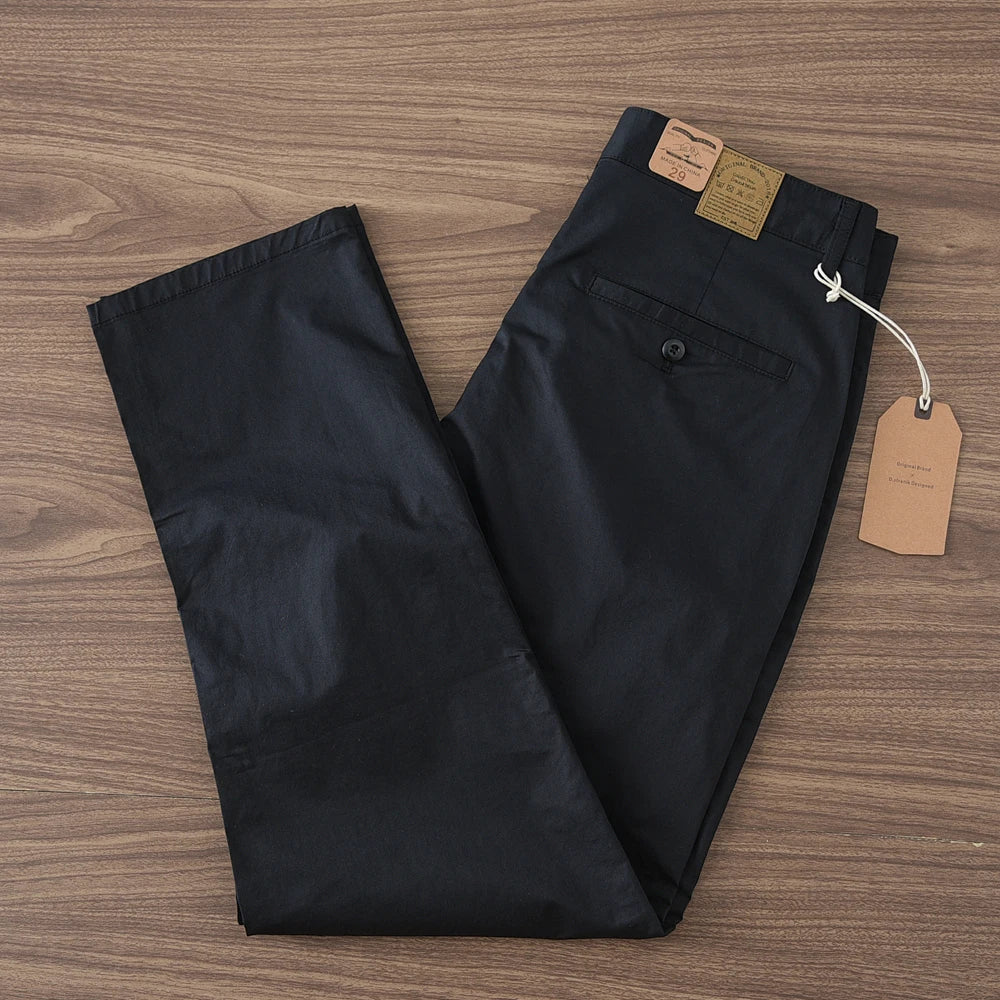 These Business straight fit cotton pants. Made from soft, breathable cotton, they’re perfect for everyday wear. With plenty of pockets, they combine practicality with a cool vintage look. Whether you’re out and about or just chilling, these pants keep you comfortable and effortlessly stylish.