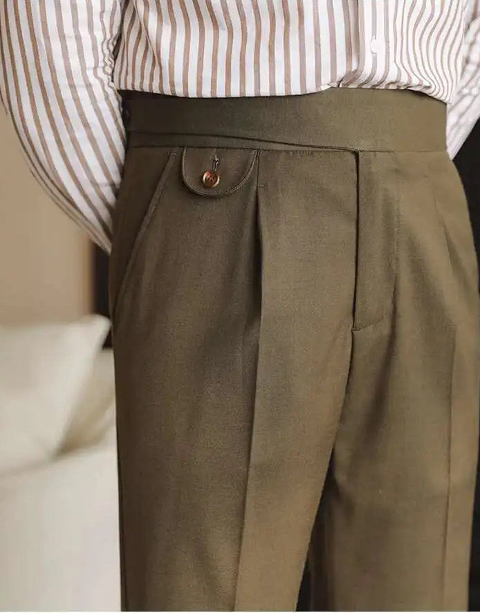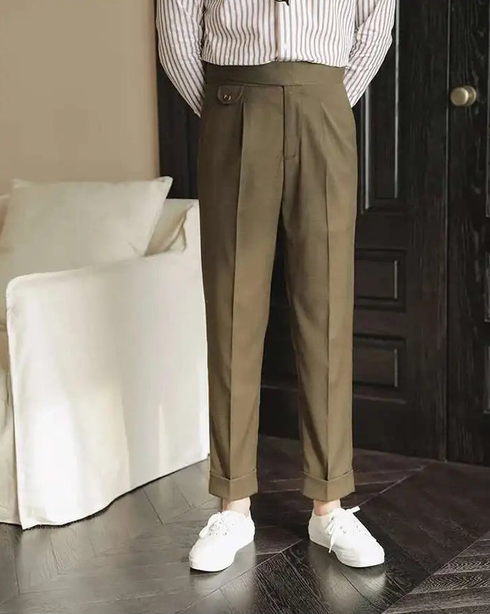These Classic office gentleman trousers bring classic style with a laid-back vibe. Made from soft, breathable cotton, they’re perfect for everyday wear. With plenty of pockets, they combine practicality with a cool vintage look. Whether you’re out and about or just chilling, these pants keep you comfortable and effortlessly stylish.