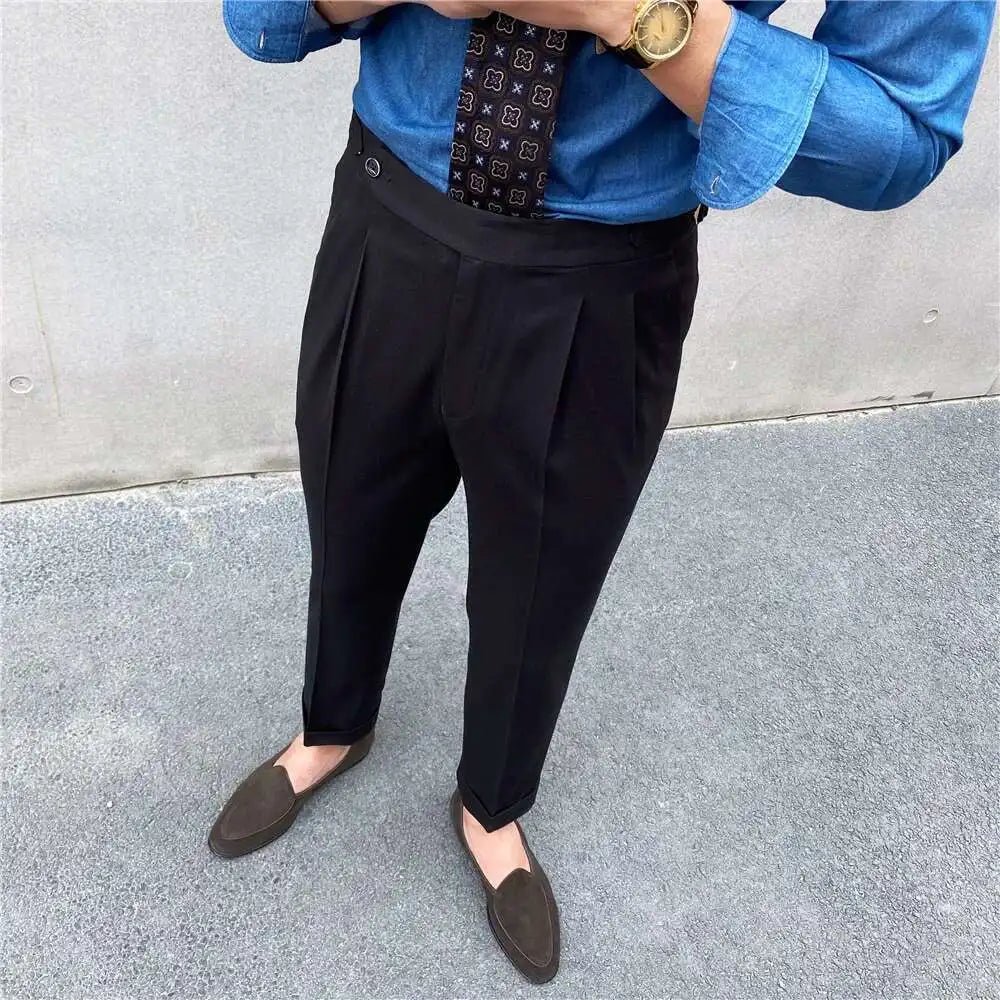 Italian design ankle high-waist trousers