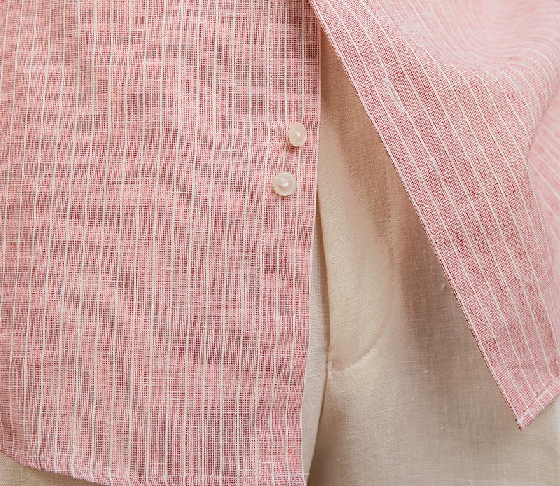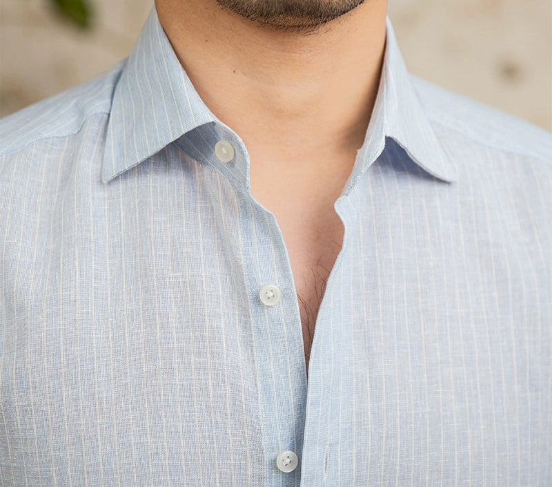 Get ready for a sophisticated look with our Old money striped linen shirt. Boasting a timeless design, this shirt is perfect for any professional setting. Made with high-quality materials, it offers both style and comfort. Make a statement and elevate your wardrobe with this must-have piece.