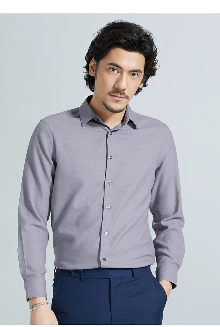 Crafted from high-quality cotton, this long-sleeve shirt offers a naturally soft feel and breathable comfort throughout the day. The classic collar enhances its timeless character, creating a refined look that remains effortlessly modern.