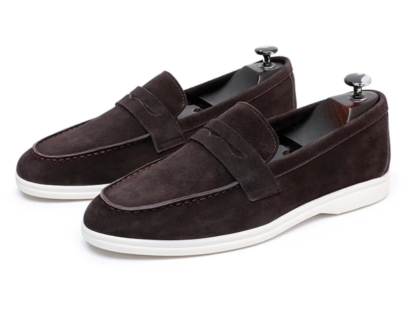 Effortless sophistication meets everyday comfort in this genuine suede leather slip-on loafer. The soft, luxurious suede upper glides on without laces, while the streamlined silhouette works seamlessly from office to weekend. Premium craftsmanship and a refined design make this a versatile essential that elevates any wardrobe with understated elegance.