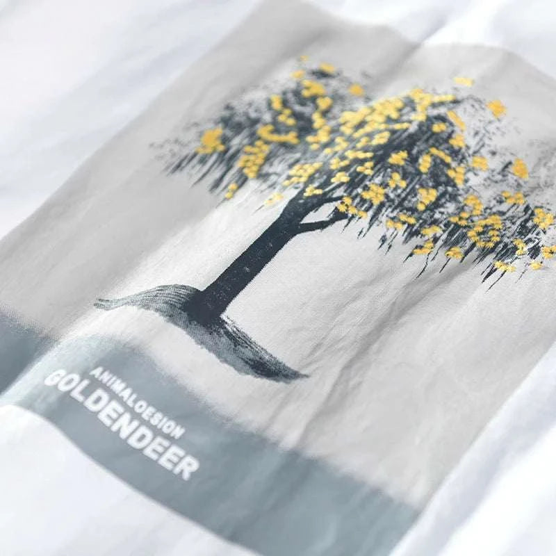 - Muster Typ: Unifarben mit Baumaufdruck