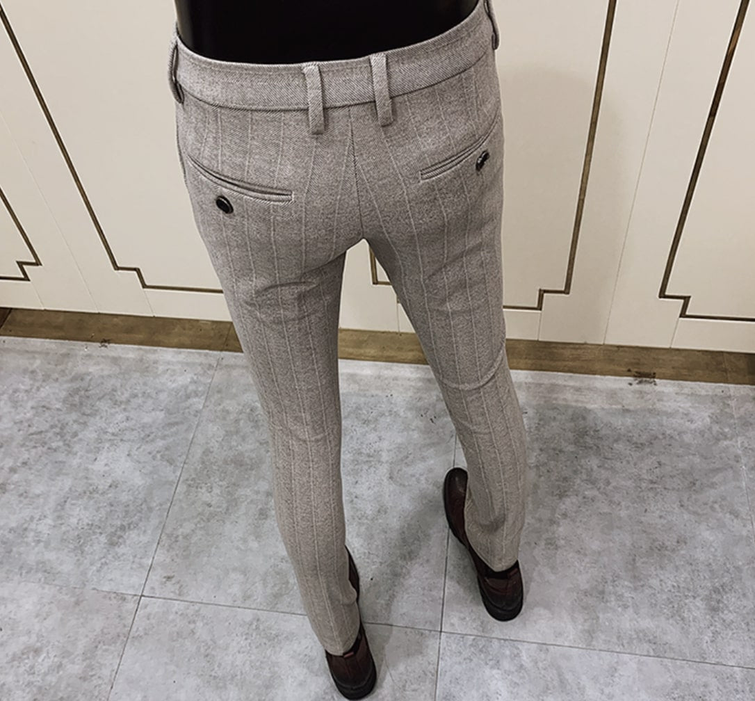 Cada pantalón está diseñado para ser cómodo y duradero, perfecto tanto para ocasiones formales como informales. Fabricados en algodón 100%, los Pantalones a Rayas Antonio quedarán genial con sus camisas o polos. Disponibles en las siguientes variantes: Pantalón caqui, Pantalón gris oscuro
