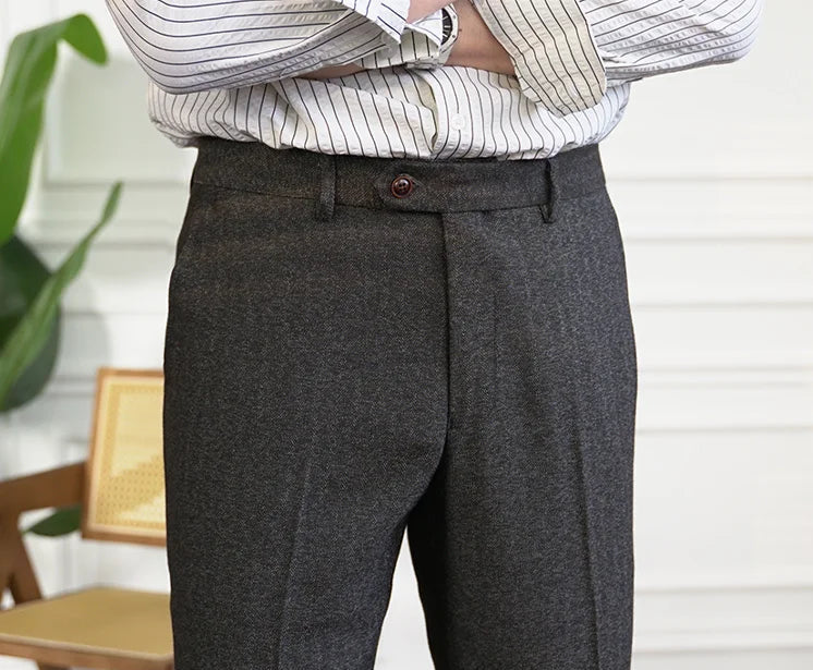 Eleve su estilo con nuestros pantalones de traje de tweed de invierno. Confeccionados en poliéster y viscosa, estos pantalones ofrecen comodidad y un aspecto profesional. Perfectos para cualquier ocasión, estos pantalones elevarán su guardarropa a nuevas cotas.