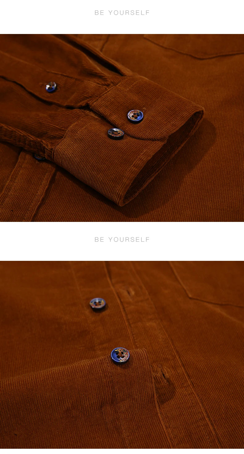 Camisa informal 100 % algodón de pana con bolsillo
