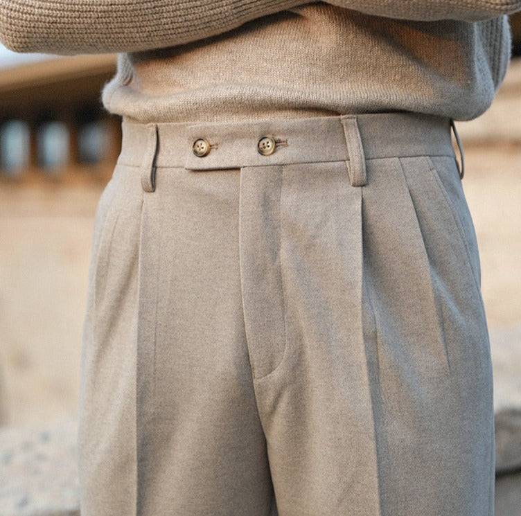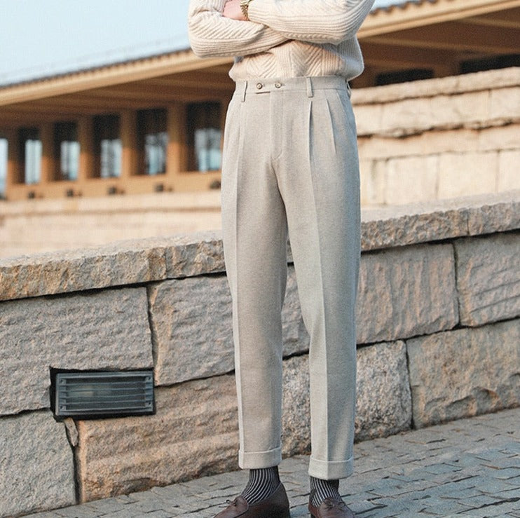 Le design de ce pantalon s'inspire de l'élégance discrète du style Old Money. Il offre une coupe parfaite, ni trop ample ni trop serrée, promettant une silhouette nette et universellement flatteuse. Une pointe subtile vers la cheville ajoute une touche contemporaine à ce modèle classique, garantissant que ce pantalon reste une pièce intemporelle dans la garde-robe de n'importe quel homme.