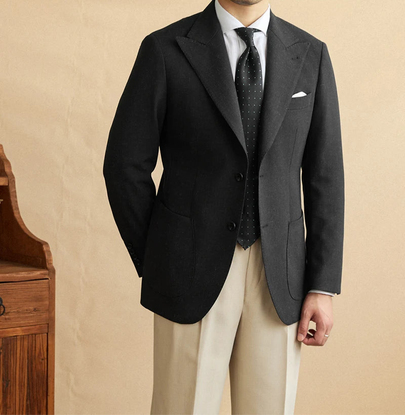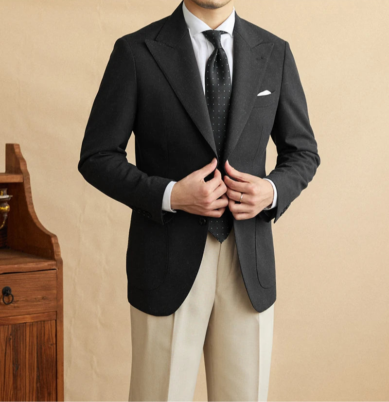 Ce blazer italien élégant à col barge pour mariage et banquet est parfait pour rehausser votre look quotidien décontracté. Le col unique ajoute une touche d'élégance, ce qui en fait un vêtement idéal pour les événements formels. Avec son style polyvalent et sa construction de haute qualité, ce blazer est un must-have pour toute garde-robe.
