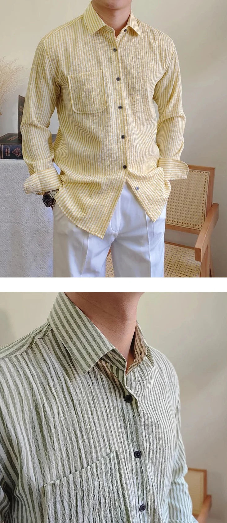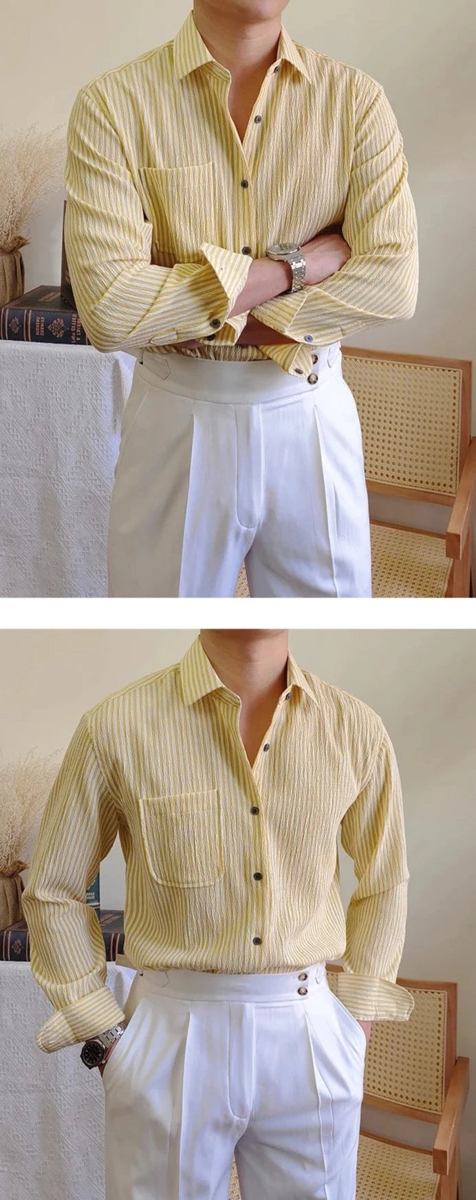 La chemise à manches longues à rayures italiennes est une chemise à manches longues qui s'harmonisera avec votre tenue décontractée et apportera du confort à votre peau. Fabriquée en coton et en tissus de qualité supérieure. L'article idéal pour les événements spéciaux et les réunions importantes.