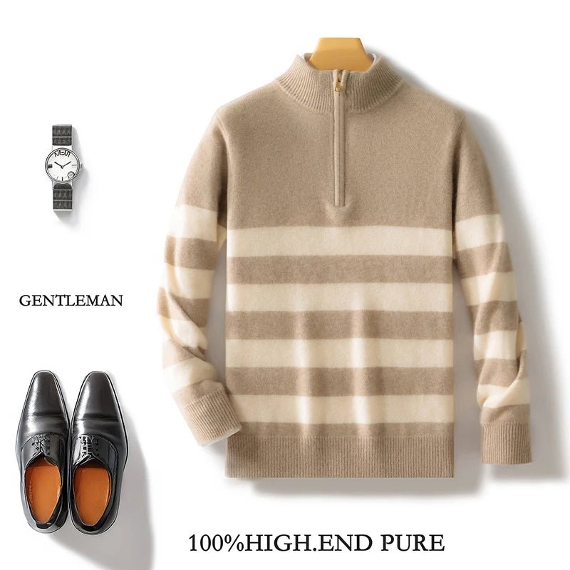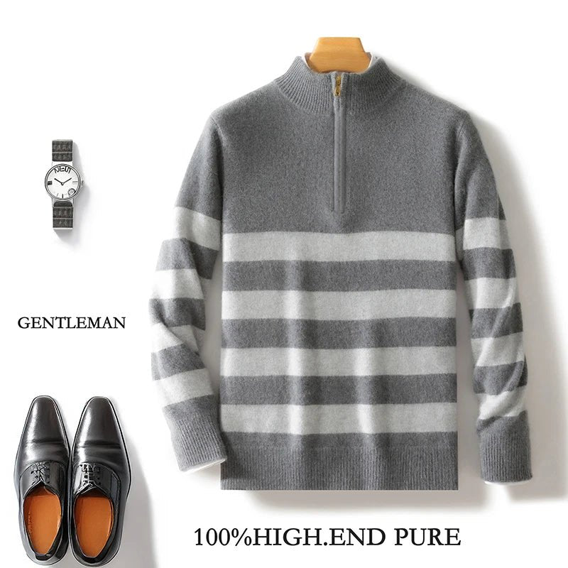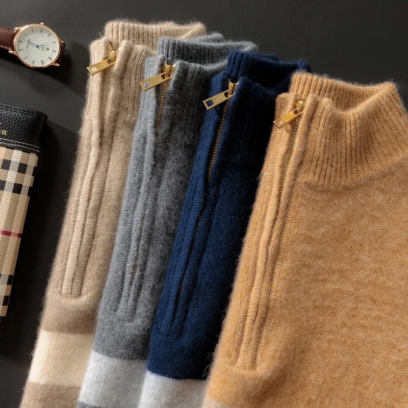 Maglione con collo a mezzo giro e zip in lana merino