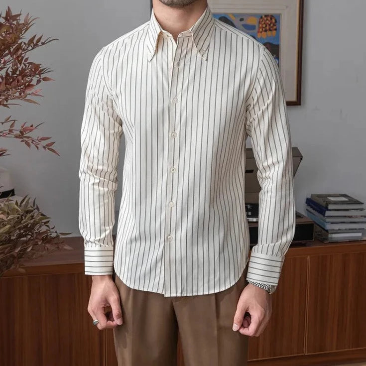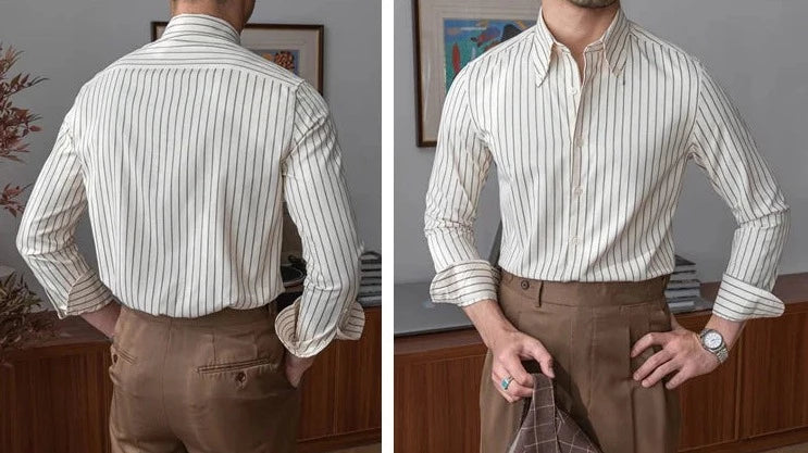 HOMBRE striped shirt is a long sleeve shirt that will match your casual outfit and provide the comfort for your skin. Made of cotton and premium fabrics. The perfect item for special events and important meetings.